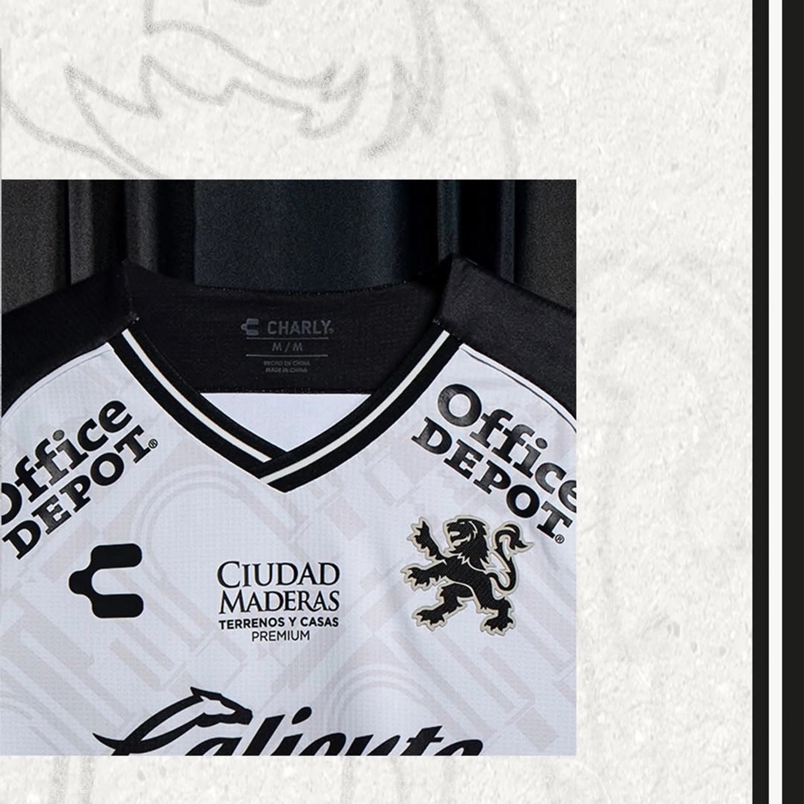 Su diseño de manga corta con terminaciones en color negro y cuello tipo “V” en el mismo tono, acompañado de detalles en crema, logra un equilibrio perfecto entre lo clásico y lo contemporáneo. El corte regular brinda comodidad para el día a día o para vivir la intensidad del fútbol en cada partido. Como protagonista visual, el jersey incorpora uno de los símbolos más emblemáticos de la ciudad: el Arco de la Calzada, emblema de bienvenida, fortaleza y tradición desde 1883. Este icono urbano, punto de encuentro de generaciones y testigo de la evolución de León, se plasma como recordatorio de que la ciudad continúa escribiendo capítulos de grandeza. El tono crema refuerza su carácter atemporal y se combina con paneles laterales en color negro, aportando contraste y estilo. El escudo, elaborado en silicón y tejido, retoma el león rampante del escudo de armas, símbolo de nobleza y fortaleza que han acompañado a la ciudad y a su equipo desde sus orígenes.